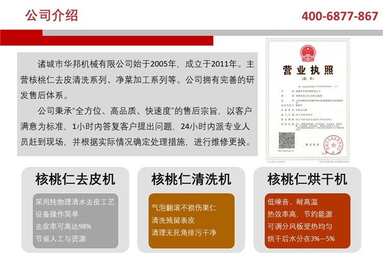 諸城華邦機械有限公司研發(fā)的核桃仁去衣機已有多年經(jīng)驗,技術(shù)成熟,且設(shè)備可以去掉不同品種核桃的技術(shù),去皮率到達98%以上,完整率99%以上,設(shè)備噴淋去皮的角度都是可以隨意調(diào)節(jié)的。