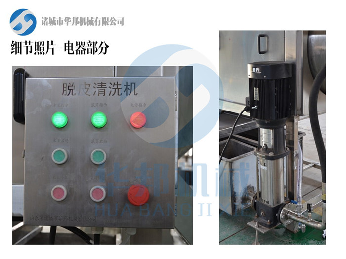 采用高壓噴淋清洗去皮,去皮率高,可連續(xù)生產(chǎn),產(chǎn)量大。