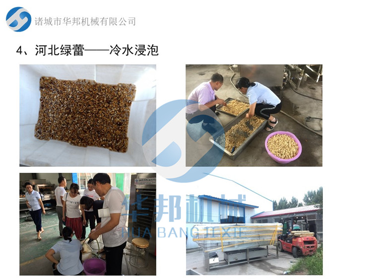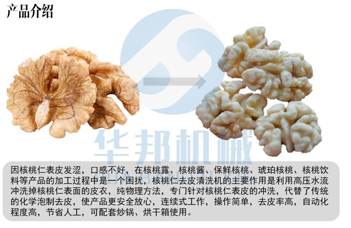 諸城華邦生產(chǎn)的核桃仁去皮機(jī),采用純物理清水滾筒去皮,滾筒內(nèi)壁采用光滑的結(jié)構(gòu)面,減少了和核桃仁的摩擦,減少了破損率,而且清洗效率高,產(chǎn)量大,一臺(tái)小型脫皮機(jī)頂10人手工剝皮。