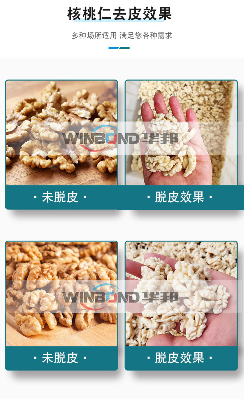 可根據(jù)核桃仁的不同品種隨意調(diào)節(jié)時間,觀察去皮效果